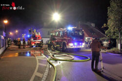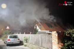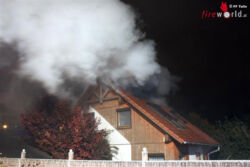 Beim Eintreffen der ersten Einsatzkräfte bei der Einsatzadresse schlugen bereits Flammen aus dem Dach des Einfamilienhauses. Die Bewohner des Hauses waren jedoch bereits wach und hatten sich unverletzt ins Freie flüchten können.