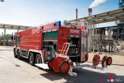 Brennbare Alkohole oder explosive Substanzen werden am Standort der Pulawy Group in Polen verarbeitet. Ein Brand könnte hier nicht nur beträchtlichen Schaden anrichten, sondern auch zur Katastrophe führen. Die Werksfeuerwehr setzt deshalb auf ein Spezialfahrzeug: Das neue Schaumlöschfahrzeug wartet mit einer beeindruckenden Kapazität von 14.000 l Schaummittel und kraftvollen Löschsystemen auf.