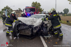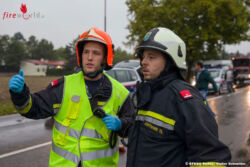 Die anfängliche Meldung über ein noch im Unfallwrack eingeklemmtes Kind bestätigte sich beim Eintreffen der alarmierten Einsatzkräfte glücklicherweise nicht. Die Feuerwehreinsatzkräfte unterstützten das ebenfalls alarmierte Notarztteam bzw. die Rettungskräfte bei der Versorgung des verletzten Kindes. Dieses wurde mit Verletzungen unbestimmten Grades mit einen Rettungsfahrzeug vom Roten Kreuz Bad Vöslau ins Spital eingeliefert. Die anderen Fahrzeuginsassen wurden auch von den Rettungskräften ebenso betreut, mussten aber nicht in ein Spital eingeliefert werden.