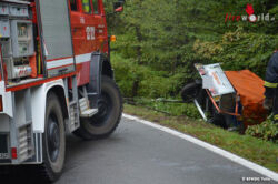 Nö: Pkw samt Anhänger nach Crash gegen Baum in Wald gestürzt