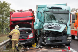 Ein Lastwagenfahrer dürfte einen vor im fahrenden Lkw übersehen haben und ist auf diesen aufgefahren. In weiterer Folge kamen beide Fahrzeuge auf gleicher Höhe am Pannenstreifen zum Stehen. Ein Lenker musste von der Berufsfeuerwehr Linz aus dem Fahrzeug befreit werden. Er wurde vom Notarzt an der Unfallstelle erstversorgt und anschließend in das UKH Linz eingeliefert.