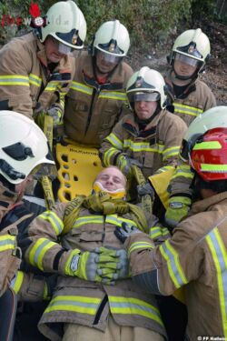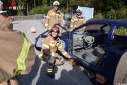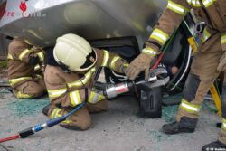 sowie einen Praxisteil, bei dem verschiedene Einsatzsituationen und taktische Möglichkeiten anhand von vier Übungsfahrzeugen nachgestellt wurden. Dabei wurden Rettungsvarianten von verunfallten Personen aus Fahrzeugen vorgestellt und unter der Anleitung des Trainers Dipl. Ing. (FH) Axel Topp vor Ort umgesetzt. Zudem gab es auch ein Wissensupdate über Schnitttechniken und den richtigen Einsatz von Hydraulischen Rettungsgeräten.