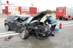 LAXENBURG (NÖ): Nur eine halbe Stunde nach dem Einrücken von einer Brandmeldeauslösung wurde die Freiwillige Feuerwehr Laxenburg am 19. Oktober 2015 um 10:06 Uhr von der Bezirksalarmzentrale Mödling neuerlich zu einem Einsatz alarmiert. Auf der Südautobahn A2 in Fahrrichtung Wien ereignete sich kurz vor der Ausfahrt Wiener Neudorf ein Auffahrunfall zwischen einem Pkw und Lkw.
