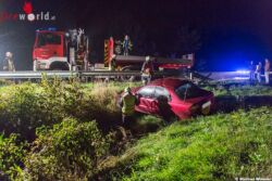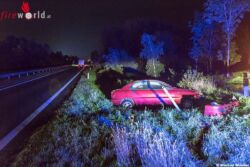 Ein Pkw-Lenker prallte im strömenden Regen mit seinem Fahrzeug gegen die Leitschiene am Beginn der Abfahrt Krems-Ost und schleuderte in weiterer Folge gegen einen großen Wegweiser der hinter der Leitschiene gestanden ist. Das Fahrzeug blieb wenige Meter hinter dem Verkehrsschild im Straßengraben liegen.