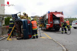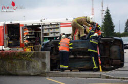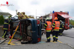 Nach dem Einweisen vor Ort des Einsatzleiters Kommandant Andrej Kmentic bekam HBI Michael Hanscheg die Aufgaben für die Feuerwehr Spielfeld zugeteilt, sofort begannen die Kameraden der Feuerwehr Spielfeld und einer unserer Feuerwehr Sanitäter mit der Erstversorgung der im Autowrack eingeklemmten verletzten Person. Nach der Erstversorgung und Stabilisierung des Fahrzeuges durch die eingesetzten „Stab-Fast“ und der positionierten Rettungsplattform wurde die Person unter Einsatz des hydraulischen Rettungssatzes aus ihrer misslichen Lage befreit. Während dessen wurde ein dreifacher Brandschutz aufgebaut und der Atemschutztrupp Spielfeld rüstete sich mit ihrem Gerät aus.