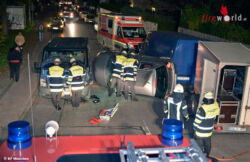 Dadurch kippte der Pkw um und blieb auf der Fahrerseite liegen. Passanten kamen dem eingeschlossenen Lenker zu Hilfe und befreiten ihn. Er kam leicht verletzt in ein Krankenhaus. Die Feuerwehr stellte das Auto wieder auf die Räder und reinigte die Fahrbahn.