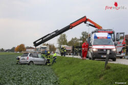 Entgegen ersten Befürchtungen war niemand im Fahrzeug eingeklemmt. Beim Zusammenstoß mit einem Lkw wurde ein Pkw über die Böschung in ein angrenzendes Feld geschleudert. Eine Person wurde verletzt und vom Rettungsdienst erstversorgt. Die Feuerwehr richtete eine örtliche Umleitung ein und führte die Aufräumarbeiten an der Unfallstelle durch. Die Grünbachtalstraße war im Bereich der Unfallstelle rund eine dreiviertel Stunde für den Verkehr gesperrt.