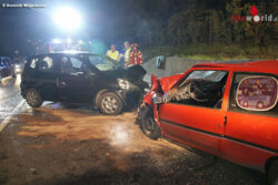 Die Feuerwehr stellte auch den Brandschutz sicher, leitete den Verkehr wechselseitig vorbei, führte umfangreiche Aufräumarbeiten durch und unterstützte den Abschleppdienst beim Abtransport der beiden Fahrzeuge. Die Unfallstelle war in diesem Bereich bis zirka 00:30 Uhr erschwert passierbar.