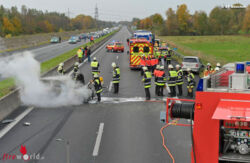 Der brennende Skoda wurde von der Feuerwehr mit einem Schaumrohr und einem Schnellangriff abgelöscht. Während der Lösch- und Rettungsarbeiten wurde die Autobahn in beiden Fahrtrichtungen komplett gesperrt.