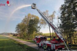 Hier galt es eine verletzte Person vom Silo eines landwirtschaftlichen Betriebes zu retten. Dazu wurde die Krankentragenhalterung am Drehleiterkorb montiert und Schritt für Schritt die Rettung mit den Feuerwehrmitgliedern in der Praxis durchgeführt. Die Teilnehmer kennen nun die Einsatzmöglichkeiten der Drehleiter und können im Einsatzfall bereits in der Anfangsphase einen geeigneten Aufstellplatz finden bzw. vorbereiten.