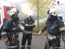 Zunächst mussten insgesamt vier Personen unter Einsatz von Wärmebildkamera und Atemschutz gerettet werden. Parallel dazu wurde von der Besatzung des Lösch-Fahrzeuges eine Zubringerleitung zum Rüstlösch-Fahrzeug gelegt. Die sehr realistisch geschminkten “Opfer” wurden sofort von den anwesenden Rettungssanitätern und einem Arzt mit Unterstützung von Feuerwehrkräften erstversorgt. Als Übungsbeobachter bei dieser Station fungierte Pflichtbereichs-Kommandant Karl Daxecker.