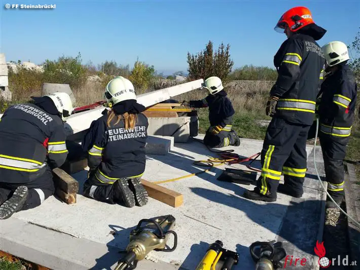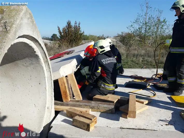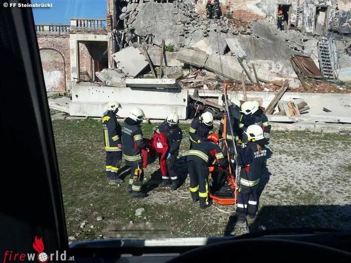 Nach der Anreise der sechs Feuerwehren (Bad Fischau, Brunn a.d.Schbgb., Dreistetten, Markt Piesting, Steinabrückl und Wöllersdorf) im Zugsverband galt es Menschenrettungen aus einem Schacht, einem zum Teil eingestürzten Haus und einem Trümmerfeld mit den zur Verfügung stehenden technischen Möglichkeiten zu befreien und zu Retten.