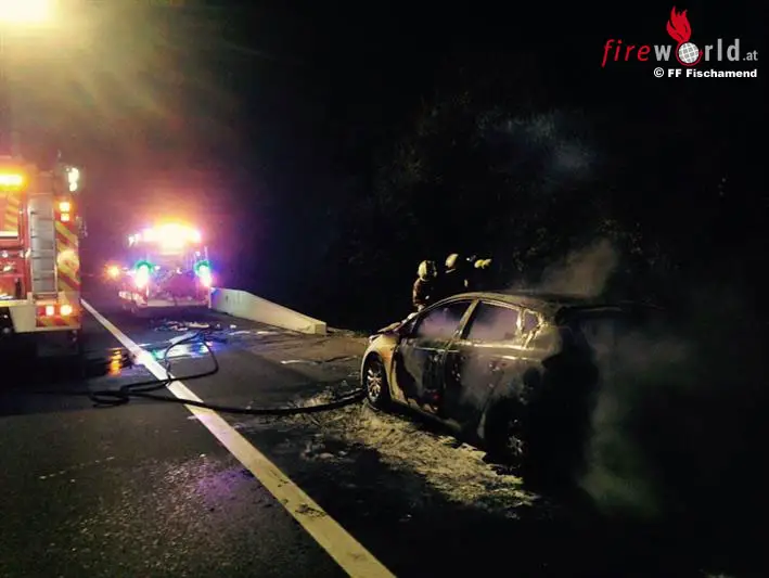 FISCHAMEND (NÖ): Zu einem Fahrzeugbrand wurde die Freiw. Feuerwehr Fischamend am 28. Oktober 2015 um 17:21 Uhr auf die Ostautobahn Richtung Ungarn bei Baukilometer 26 alarmiert.
