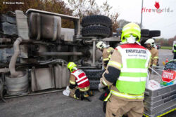Vbg: Umgekippter Sattelschlepper bei Autobahnauffahrt Feldkirch-Nord