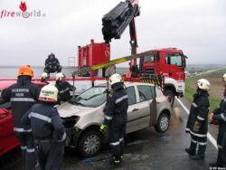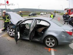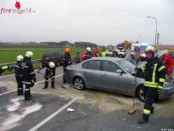 Zwei Pkw und ein Lkw waren in den Verkehrsunfall verwickelt. Da die Polizei bereits die Verkehrsregelung übernommen hatte, konnte sofort ein Unfallfahrzeug mittels Kran des Wechselladefahrzeuges geborgen werden. Das zweite Fahrzeug wurde auf die Seite geschoben und die Unfallstelle gereinigt. Bei diesem Unfall wurden drei Personen verletzt.
