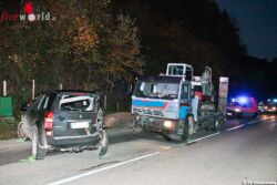 Nach dem Eintreffen am Einsatzort wurde die Unfallstelle abgesichert und beleuchtet. Der Einsatzleiter stellte bei der Erkundung fest, dass es sich nur um Blechschäden handelte und keine Personen verletzt wurden. Nach der Unfallaufnahme durch die Polizei wurde der Pkw von der Firma Prinz abgeholt, die Fahrbahn gereinigt und die Unfallstelle geräumt.