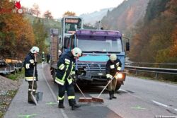 Der Lastwagen wurde mittels Begleitschutz der Feuerwehr auf sein Firmengelände zurückgefahren. Die Feuerwehr Kleinraming war mit 3 Fahrzeugen und 42 Mann 2 Stunden im Einsatz.