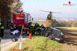 Dabei wurde ein Fahrzeuglenker aus dem Fahrzeug geschleudert und erlitt schwere Verletzungen. Der Schwerverletzte wurde vom Rettungsdienst, Notarzt sowie dem Team des Rettungshubschrauber Christophorus 10 notärztlich erstversorgt und anschließend ins Krankenhaus geflogen. Die Feuerwehr unterstützte die Aufräumarbeiten und band ausgelaufene Betriebsmittel.