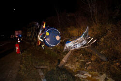 Nach Absprache mit dem Autobahnmeister der ASFiNAG wurde seitens der Feuerwehr noch in den Nachtstunden ein Bergeversuch gestartet. Dieser wurde jedoch nach kurzer Zeit abgebrochen. Da der umstürzte Tanklastzug zu Gänze im Straßengraben liegt, dadurch keine Fahrbahn behindert ist und eine Umweltgefährdung durch das teilweise leicht austretende Medium nicht besteht, wird auf das geplante Eintreffen einer privaten Spezialtransportfirma in den heutigen Vormittagsstunden abgewartet.