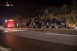 Der Lenker des umgestürzten Lkw-Tanksattelzuges wurde dabei unbestimmten Grades verletzt und von den alarmierten Rettungskräften ins Spital eingeliefert.