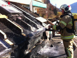 NEUKIRCHEN A. GRV. (SBG): Am Vormittag des 5. November 2015 wurde die Feuerwehr Neukirchen um 09.39 Uhr von der LAWZ – Salzburg via Sirene, Rufempfänger und SMS zu einem Brandeinsatz in die Künstlergasse alarmiert. Auf einer Baustelle war bei Flämmarbeiten ein Dach im 4. OG in Brand geraten.