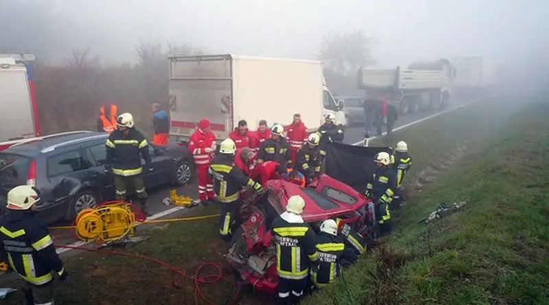 KREMS AN DER DONAU (NÖ): Zu einer ungewöhnlichen Pkw-Bergung wurde die Freiwillige Feuerwehr Krems an der Donau in den Mittagsstunden des 6. November 2015 alarmiert. Ein Pkw fuhr am Parkplatz des Cinemaplexx in der Gewerbeparkstraße gegen ein Verkehrszeichen.