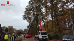 HONERDINGEN (DEUTSCHLAND): Am 5. November 2015 um 15:35 Uhr wurden die Freiwillige Feuerwehr Honerdingen und die Drehleiter der Freiwilligen Feuerwehr Walsrode mit dem Alarmstichwort „Person in Notlage in ca. 15 Meter Höhe“ nach Honerdingen in die Dorfallee alarmiert.