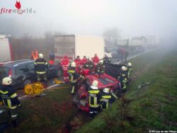 LAA AN DER THAYA (NÖ): Am 5. November 2015 um 7.30 Uhr wurde die Feuerwehr Laa gemeinsam mit den Feuerwehren Unterstinkenbrunn und Hanfthal zu einem Verkehrsunfall mit Menschenrettung auf der B6 (Ri. Eichenbrunn, kurz nach der Ortsausfahrt Unterstinkenbrunn) alarmiert.
