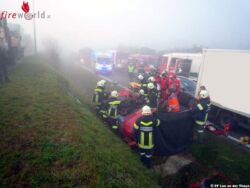Nö: Lkw prallt am Stauende gegen Pkw -> Person im Wrack eingeklemmt