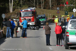 WEISSBACH (BAYERN): Am Freitagnachmittag, 6. November 2015 gegen 13.00 Uhr, hat sich auf der B305 genau an der Landkreisgrenze zwischen Weißbach an der Alpenstraße und Inzell auf der Brücke über den Weißbach ein schwerer Verkehrsunfall ereignet, bei dem ein Kradfahrer ums Leben kam.