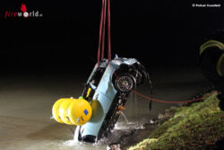 Anwohner im näheren Umfeld vernahmen Hilferufe und benachrichtigten die Polizei. Nach der Überprüfung des Unfallfahrzeuges durch Taucher der Feuerwehr nach weiteren Insassen, war sichergestellt, dass sich keine weiteren Personen im Fahrzeug befanden. Das bestätigte auch der Verunfallte. Anschließend barg die Feuerwehr das Fahrzeug mit einem Kranwagen. Die ebenfalls alarmierte Wasserschutzpolizei sperrte den Kanal für die Schifffahrt in der Zeit von 04.00 – 06.00 Uhr.