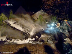 Während der Löschmaßnahmen stürzte die vornehmlich aus Holz bestehende Hütte vollständig ein. Sie konnte leider nicht mehr gerettet werden. Die umliegenden Gebäude konnten durch das schnelle und massive Eingreifen der Feuerwehr gehalten werden. Lediglich die Scheune und ein daneben stehender Anhänger wurden leicht beschädigt.