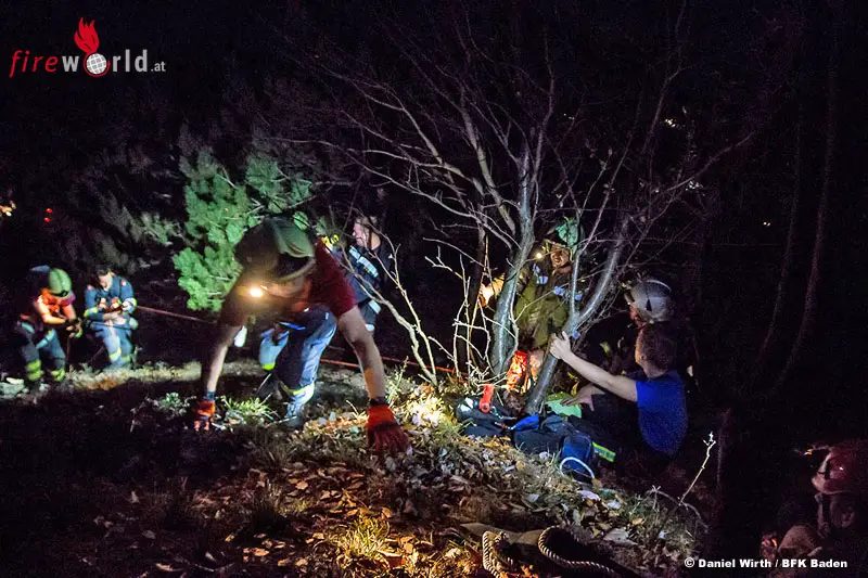 Kurz vor 16:30 Uhr setzte der verzweifelte Vater über 122 einen Notruf ab. Der Vater konnte seinen Standort und auch den Weg relativ genau beschreiben, was den Rettungskräften die Suche erleichterte. Aufgrund der einsetzenden Dunkelheit und der unklaren Lage alarmierte der diensthabende Leitstellendisponent der Feuerwehr-Bezirksalarmzentrale Baden die Feuerwehren Alland, Groisbach und die Höhenrettungsgruppe der Feuerwehr Baden-Weikersdorf zu den Personen in Notlage. Über die Rettungsleistelle wurde auch die Bergrettung angefordert.