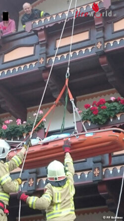SCHWAZ (TIROL): Am Montag, den 9. November 2015, wurde die Feuerwehr Schwaz zu einer Drehleiterbergung gerufen. Weil die Drehleiter aufgrund der Örtlichkeit nicht aufgestellt werden konnte, wurde die Patientin abgeseilt.