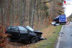 GIESSEN (DEUTSCHLAND): Auf der Bundesstraße 457 zwischen Gießen und Lich kam es am Montagnachmittag, 9. November 2015, zu einem schweren Verkehrsunfall, bei dem zwei Autofahrer getötet und ein Lastwagenfahrer schwer verletzt wurden.