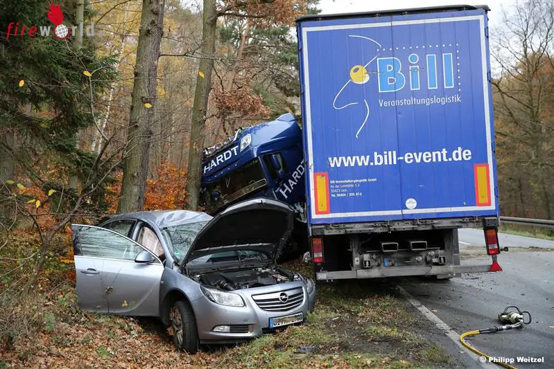 GIESSEN (DEUTSCHLAND): Auf der Bundesstraße 457 zwischen Gießen und Lich kam es am Montagnachmittag, 9. November 2015, zu einem schweren Verkehrsunfall, bei dem zwei Autofahrer getötet und ein Lastwagenfahrer schwer verletzt wurden.