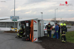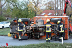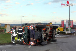 Aus noch unbekannter Ursache hat der Lenker im Drakenkreisverkehr die Kontrolle über das Fahrzeug verloren, wodurch dieses in weiterer Folge auf die rechte Seite stürzte. Die Beiden Gemeindebediensteten konnten sich selbst aus dem Fahrzeug befreien. Ein zufällig an der Unfallstell vorbeikommender Mitarbeiter des Blutspendedienstes des Roten Kreuzes betreute den leicht verletzten Fahrer bis zum Eintreffen des Rettungsdienstes. Der Mitfahrer blieb bei dem Unfall unverletzt.