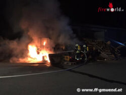 GMÜND (NÖ): Am 12. November 2015 wurde die Freiwillige Feuerwehr der Stadt Gmünd um 20.06 Uhr zu einem Fahrzeugbrand im Lagerhaus Gmünd in die Hans Czettelstraße alarmiert. Ein Mitarbeiter hatte bei einem Rundgang einen brennenden Radlader neben einem Holzstapel vorgefunden.