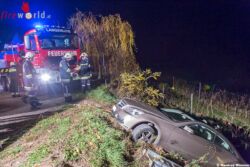 MOLLANDS (NÖ): Zu einem technischen Einsatz mit Menschenrettung wurden am 13. November 2015, um 1.24 Uhr die Feuerwehren Mollands, Langenlois und Schönberg am Kamp alarmiert. Ein Pkw rutschte aus unbekannter Ursache auf einen Parkplatz über eine Geländekante rückwärts in einen Weingarten und blieb auf einer Stützmauer hängen.