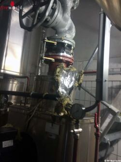 Nach dem Eintreffen wurde umgehend die Lage erkundet. Im Keller wurde durch eine zerborstene Heizungsleitung heißer Wasserdampf frei, was zur Auslösung der automatischen Brandmeldeanlage führte.