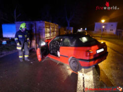 Nö: Fahrzeugbergung nach Zusammenprall mit Containermulde