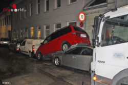 WIEN, 23. BEZIRK: In den frühen Morgenstunden des 16. November 2015 wurde die Berufsfeuerwehr Wien zu einem Verkehrsunfall mit einem Lkw alarmiert in die Fröhlichgasse alarmiert. Ein Lieferwagen hatte beim Vorbeifahren einen geparkten Pkw und schob ein weiteres Auto nach vorne. Dadurch wurde dieses unter das davor abgestellte Kraftfahrzeug gedrückt.