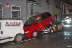 Wien: Lieferwagen rammt Pkw und türmt Auto auf