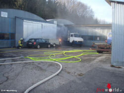 WACHTBERG (NÖ): Bei einem Autoverwertung am Wachtberg kam es um 09:30 Uhr des 16. November 2015 zu einem Brand einer Acetylengasflasche. Bei Schweißarbeiten begann eine Acetylengasflasche zu brennen.