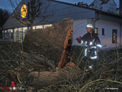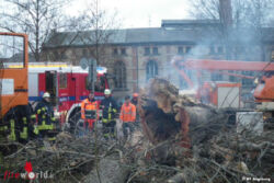 Gegen 16:45 Uhr wurde die Berufsfeuerwehr erneut zur Einsatzstelle gerufen. Der schöne Baum war bereits gefällt. Aus dem Wurzelstock drang dichter Brandrauch mit Glutbildung. Die Berufsfeuerwehr löschte mit 400l Wasser. Mit der Wärmebildkamera wurde der Wurzelbereich kontrolliert.