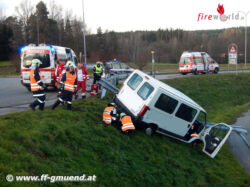 Im weiteren Verlauf konnte der Fahrzeuginsasse vollkommen problemlos aus dem Fahrzeug gerettet und vom Roten Kreuz versorgt werden. Danach wurde der Bus mittels Seilwinde zur Fahrbahn zurückgezogen. Der Unfallwagen konnte danach aus eigener Kraft zu einem Parkplatz gefahren und abgestellt werden. Nach einer gründlichen Fahrbahnreinigung konnten die Einsatzkräfte der Feuerwehr Gmünd wieder einrücken.