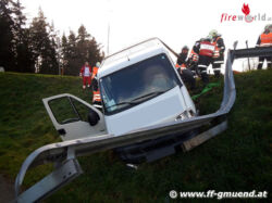 Nö: Kleinbus durchbricht Leitplanke, Person eingeschlossen