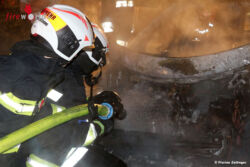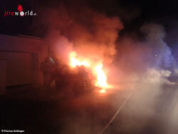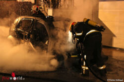 Bei der Ankunft des ersten Löschfahrzeuges, stand der Smart in Vollbrand. Unter umluftunabhängigem Atemschutz wurde unverzüglich ein Hochdruckrohr der Schnellangriffseinrichtung vorgenommen und die lodernden Flammen, welche bereits auf die Hausfassade überzugreifen drohten, niedergeschlagen. In kurzen Abständen trafen weitere Einsatzfahrzeuge ein und eine weitere Angriffsleitung wurde vorbereitet, um das Gebäude ausreichend zu schützen.