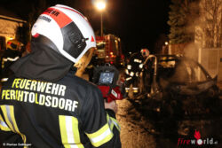 Unter Beobachtung durch eine Wärmebildkamera, zeigte der umfassende Löschangriff rasch seine Wirkung. Nach den Maßnahmen zur Brandbekämpfung konnte der Kleinwagen, durch Muskelkraft der Einsatzkräfte, gänzlich im Bereich der Privateinfahrt positioniert werden. Die Freiwillige Feuerwehr Perchtoldsdorf war, unter der Leitung von Kommandant-Stellvertreter HBI Wilhelm Nigl, mit vier Fahrzeugen und 28 Mann im Einsatz.