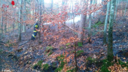 SCHWANBERG (STMK): Aus bisher ungeklärter Ursache brach am Freitag, dem 20. November 2015, in Kruckenberg (Gemeinde Schwanberg) ein Waldbrand aus. Rund 200 Quadratmeter Waldboden standen in den Morgenstunden in Flammen.